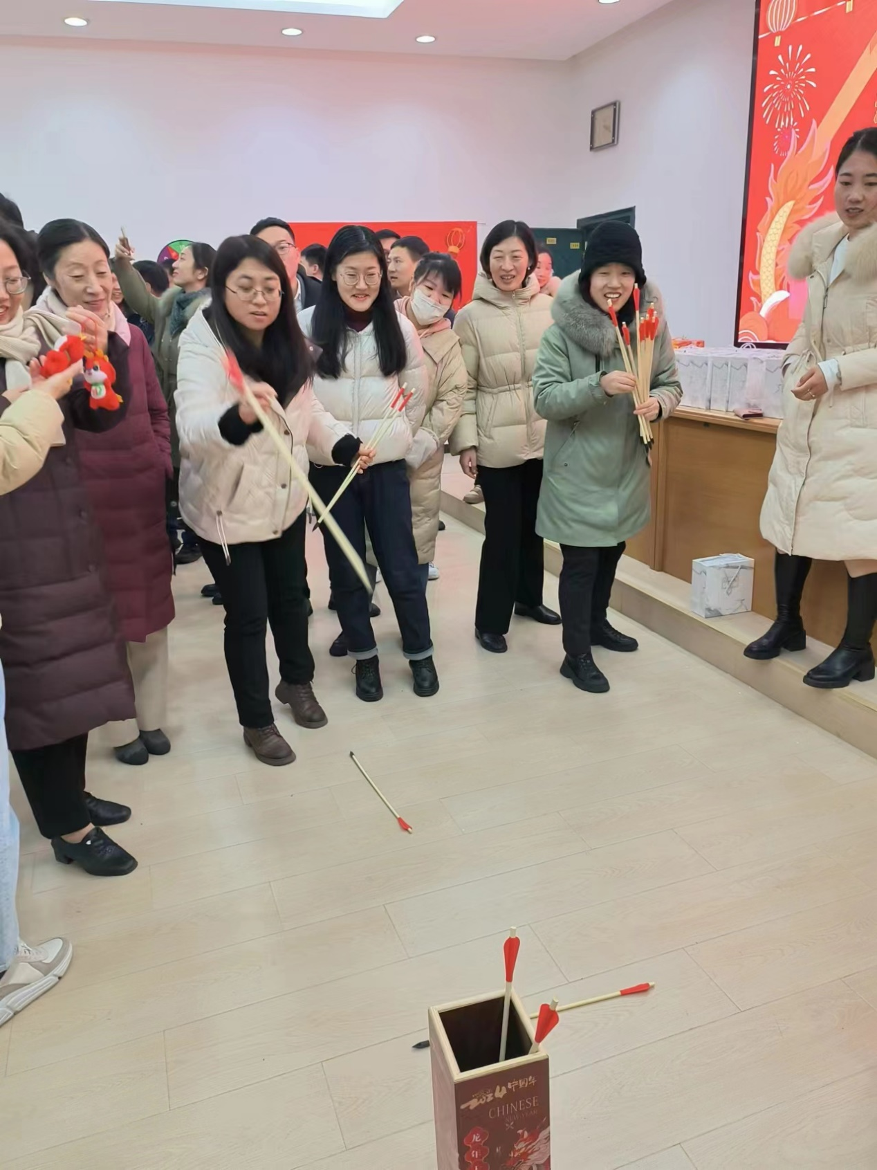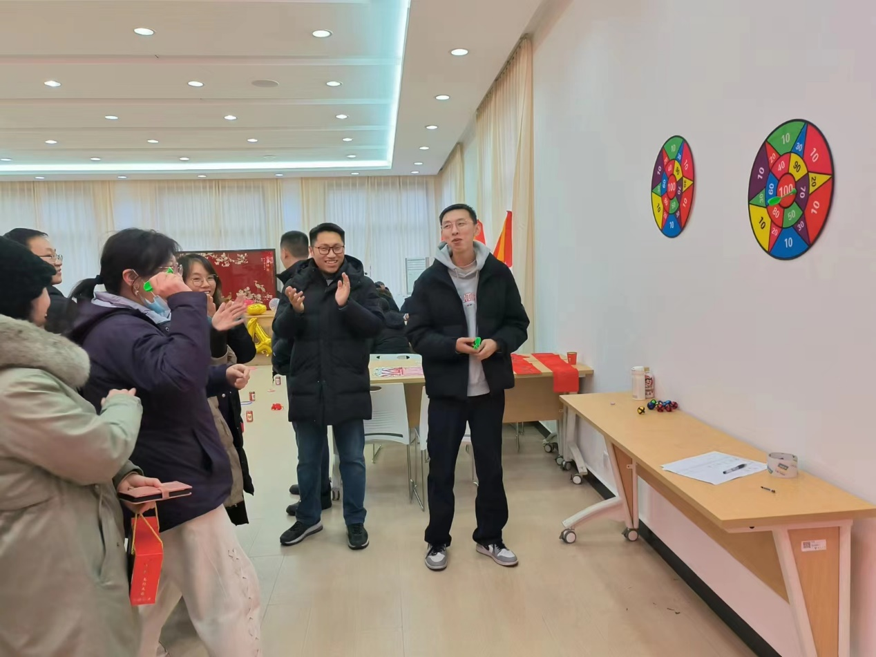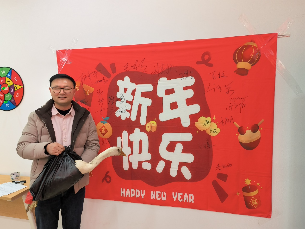 在欢声笑语中,新年联欢会拉开了序幕,动科“明星们”纷纷在祝福留言板上签名留念。随后老师们开启激烈的“圈套大鹅”活动,热闹非凡。活动各种各样,掼蛋、投壶、投飞镖和写祝福语等。现场气氛温馨,幸福洋溢。每位参与活动教职工均有精美小礼品,特色奖品大鹅更是吸引众多教职工前来参与。这场活动为迎接2024年新春佳节营造了和谐温馨、团结友好的氛围。
