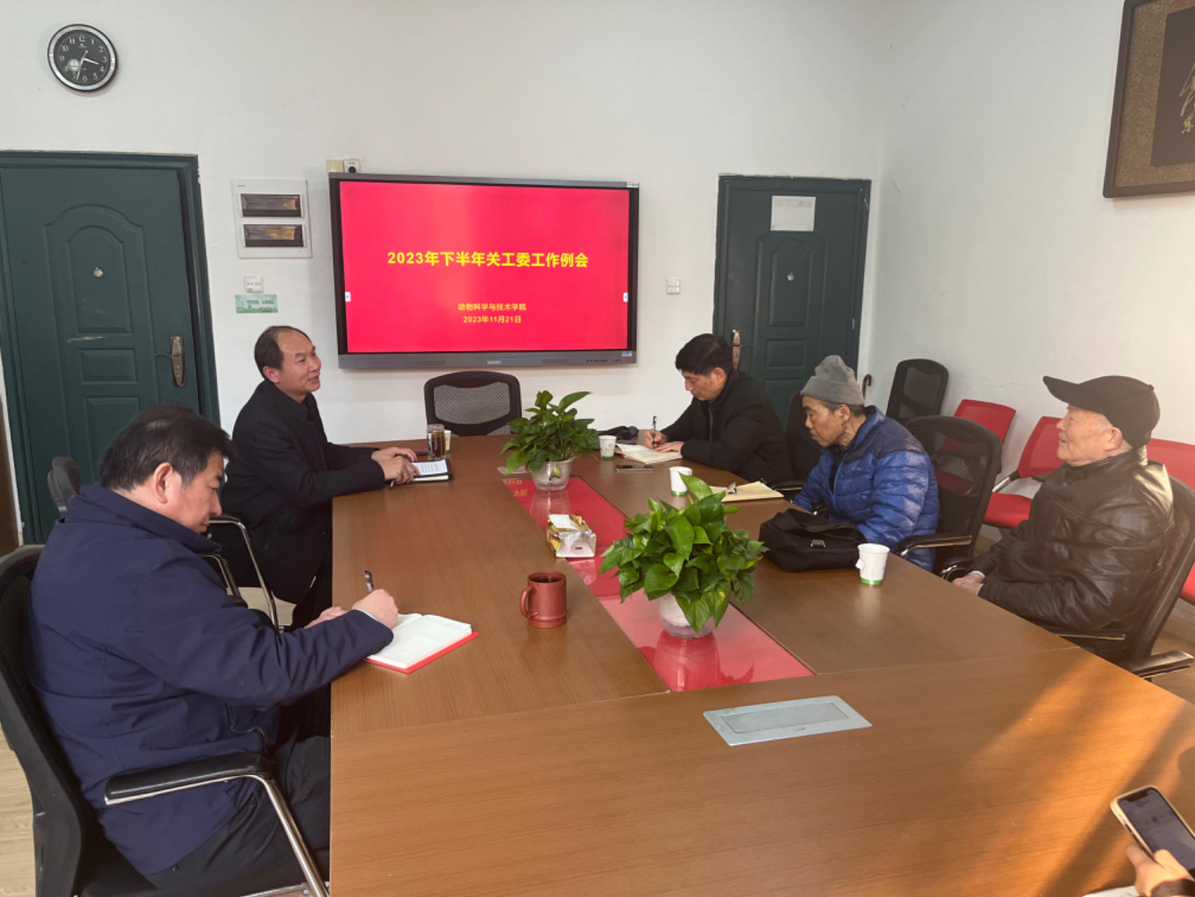 11月21日下午,动科学院在牧医楼207会议室召开2023年秋学期关工委工作例会,校关工委副主任吴春明,院党委书记刘春秋,院党委副书记高红明,院关工委老同志张牧、经荣斌以及全体辅导员参会。