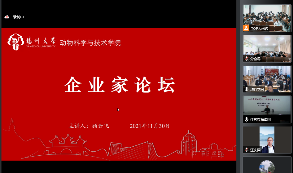 为帮助新生明确专业目标和职业发展方向,科学地规划职业生涯,近日,学院特邀优秀企业家——江苏京海禽业集团有限公司董事长、总经理顾云飞、大连三仪集团副董事长江庆国和北京生泰尔科技股份有限公司总经理姜殿国为我院新生做线上职业生涯规划报告。