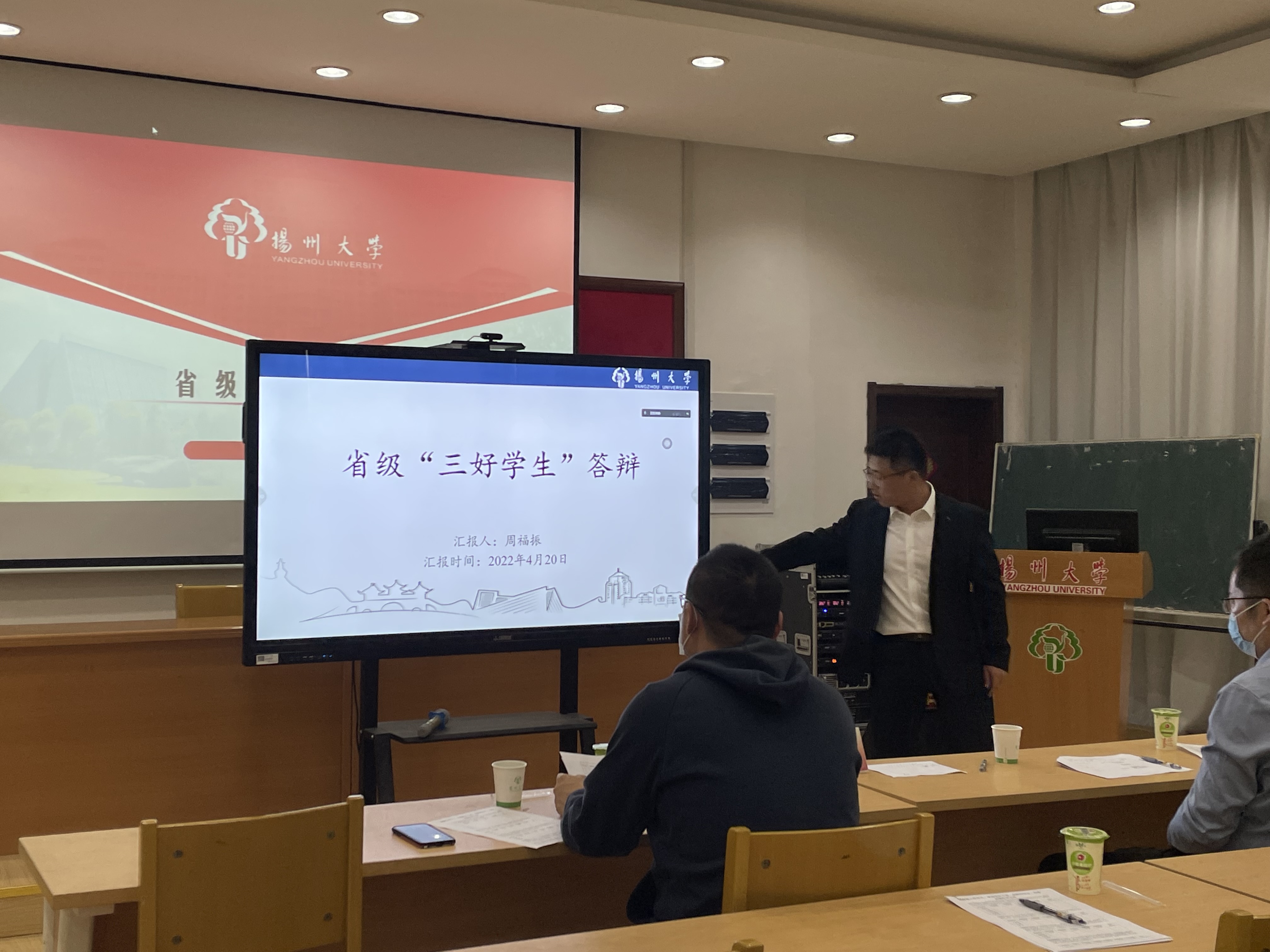 4月20日,我院举行2022年度省级三好学生、优秀学生干部、优秀毕业生和先进班集体评审答辩会。校学工处王猛老师、研工部龚超老师、校团委刘娟老师和学院全体辅导员担任评委,会议由学院学工办副主任李怡老师主持。