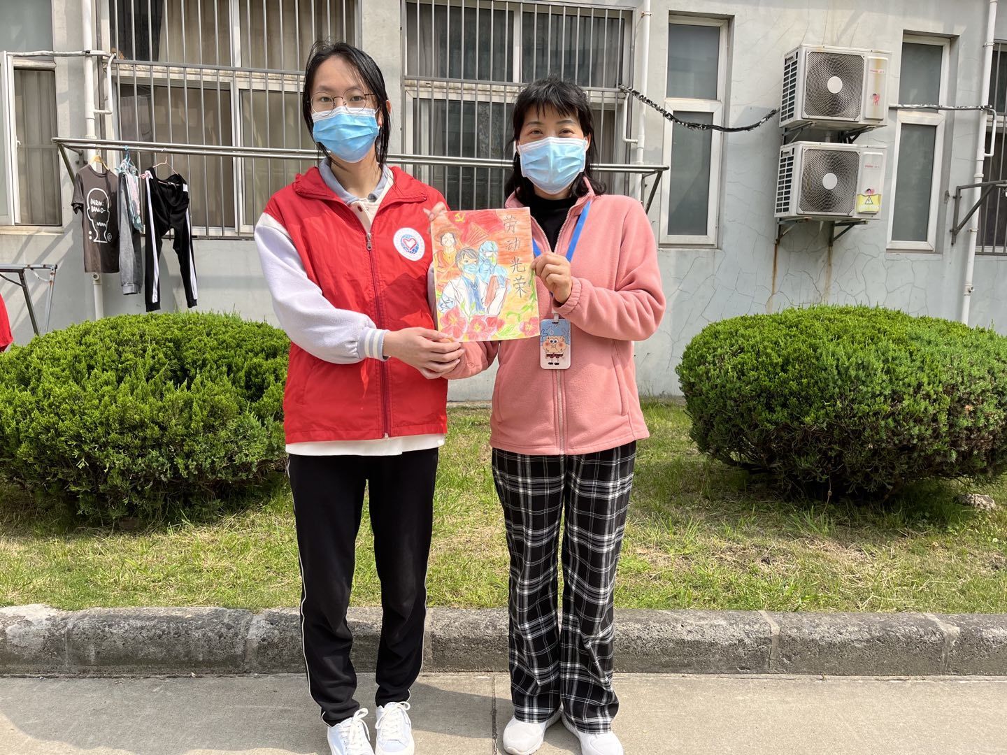 “我在校园新闻上看到,校园封闭管理后,校内后勤职工舍小家为大家,克服困难,就地住校,默默无闻、吃苦耐劳、全心全意地为我们做好优质服务,让我们在校内生活也能感受到和家一样的暖心。”活动的组织者徐昕睿说道,适逢五一劳动节,我们就组织了这次活动,通过摆台收集卡片或者绘画,最终将这些“心意”送给校园后勤人员,对广大劳动者们表达衷心的祝福与感谢。