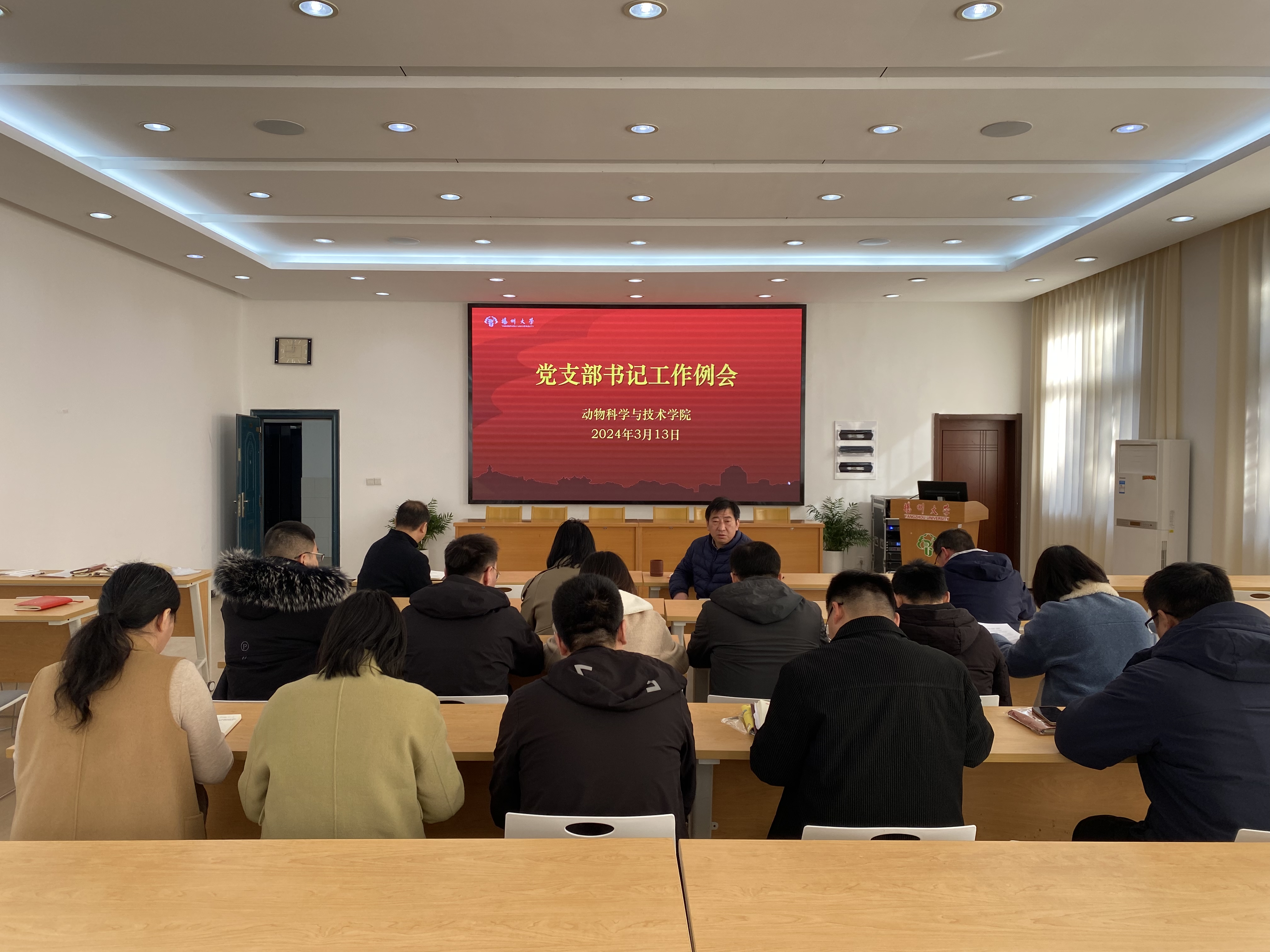 3月13日上午,学院在立华报告厅召开了新学期党支部书记工作例会。会议由学院党委书记刘春秋主持,党委副书记高红明、各党支部书记及相关工作人员参加了此次会议。