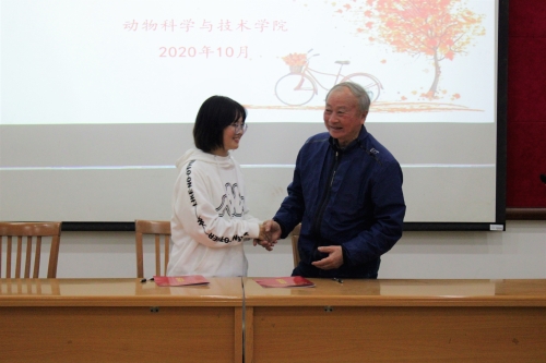 在共建活动中,动科1701班学生代表姜惠同学从“班团风采展示”和“班团活动介绍”两个方面讲述了班级与关工委老师的点点滴滴,希望动科2001班的学弟学妹们传承“畜牧人”精神,接续开展关工委的活动,牢记老同志坚苦自立踏实钻研的精神。动科2001班学生代表谢海滨同学表示,要向动科1701班的学长学姐学习,扎实专业知识,并展现出2020级学子担当责任的坚定决心。