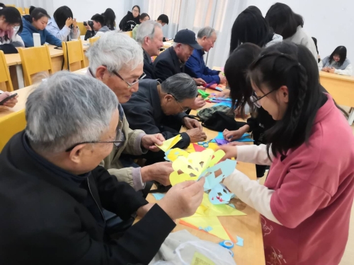紧接着,动科1701班和动科2001班合作表演了诗朗诵《红烛》,“你是人梯,甘愿奉献自己”字里行间,满满都是感情;动科2001班集体合唱扬州大学校歌,表达了对关工委老同志们深深的感谢和崇高的敬意。会中,动科2001李筝等同学还与关工委老师进行剪纸互动,老师们更是请同学们签名留念,将剪纸仔细折叠收藏起来。