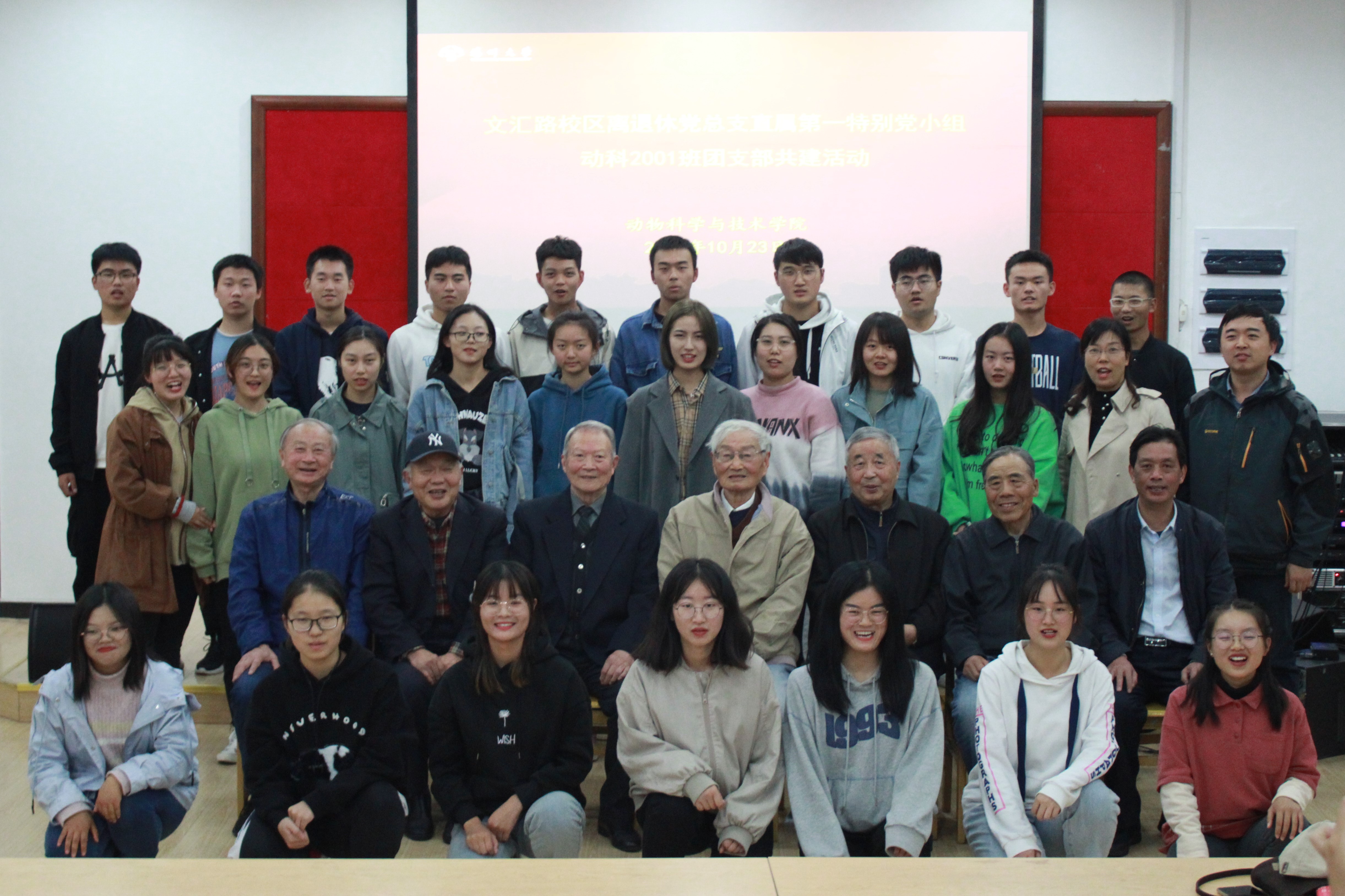10月23日下午,动物科学与技术学院在立华报告厅开展“文汇路校区离退休党总支直属第二特别党小组动科2001班团支部”共建活动。第二特别党小组:梁隆圣、王翌明、赵万里、朱吉勤、经荣斌、张牧,院党委书记夏泽清,院团委辅导员及班主任代表参加活动。动科2001班华而实同学和陈靖同学主持活动。