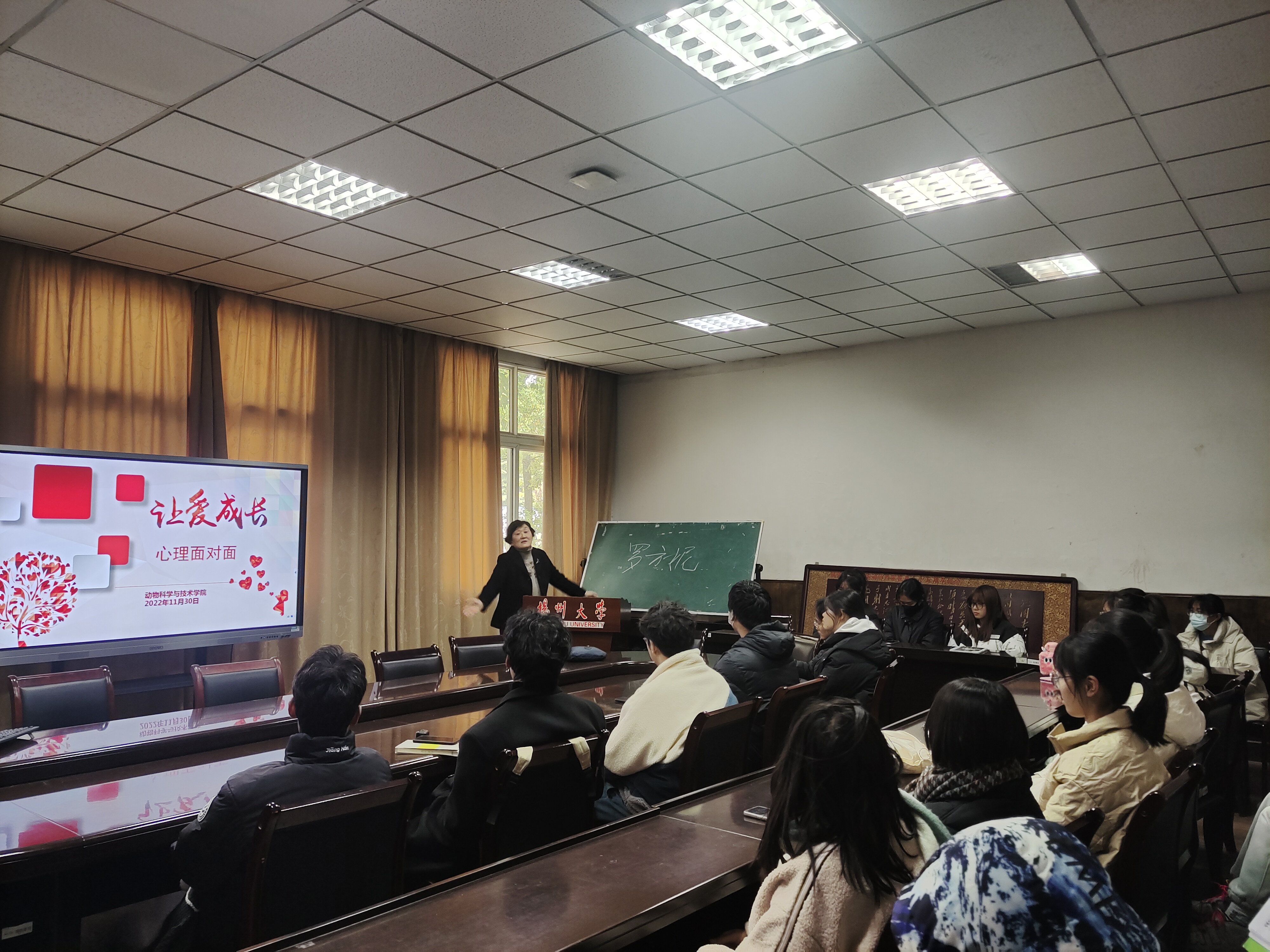 2022 年11月30日上午,动科学院邀请罗方妮老师为学院2022级新生开展心理面对面座谈会,就入学适应性问题、宿舍人际关系、恋爱观等日常问题进行面对面答疑解惑。