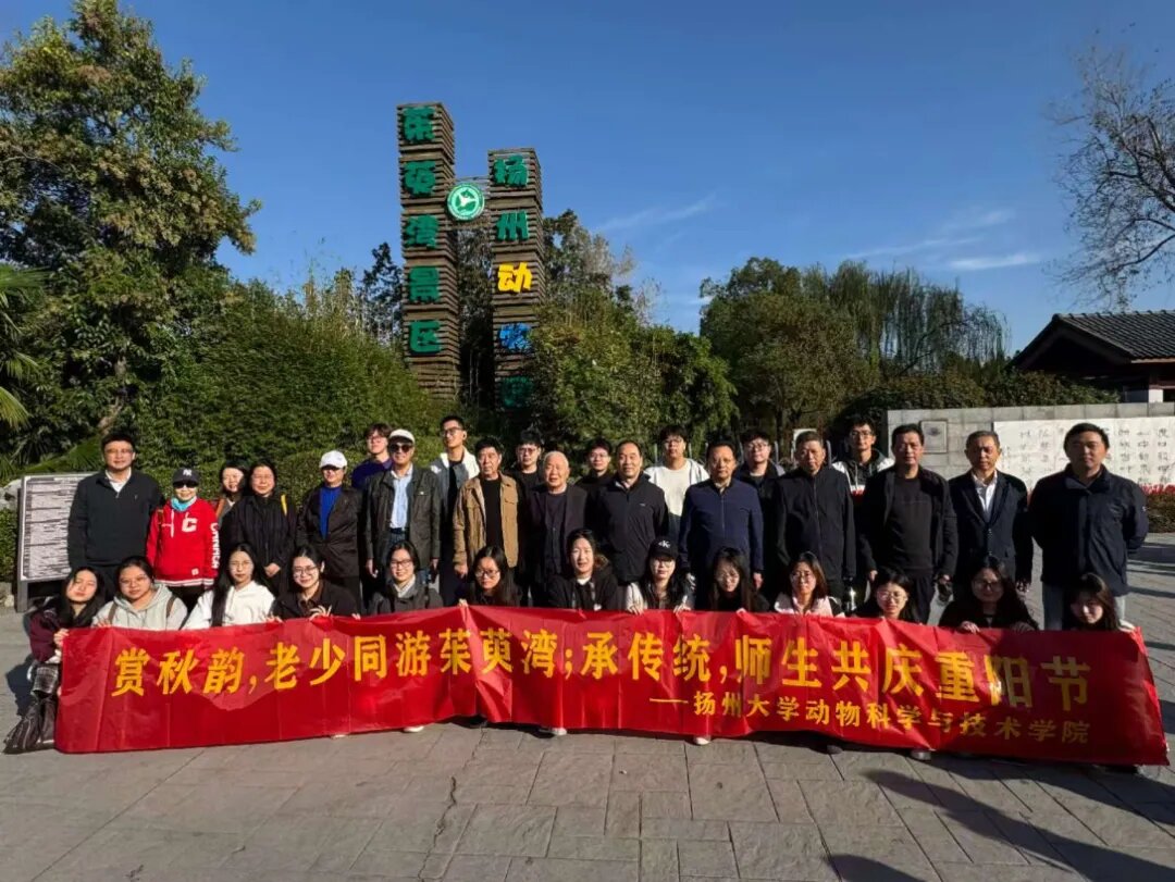 10月29日上午,扬州大学动物科学与技术学院关工委教师与动科2301班学生共同开展了“赏秋韵,老少同游茱萸湾;承传统,师生共庆重阳节”主题实践活动。离退休教师代表、院党委副书记、关工委主任高红明、副院长陈志、办公室主任任扬、辅导员周静鹏、动科2301班全体同学及班主任董丽一同参与。