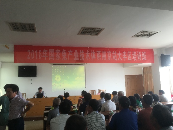 盐城市是我省毛兔主产区,针对目前兔毛市场行情低迷的现状,2016年7月27日和28日国家兔产业技术体系岗位专家、我院吴信生教授分别在大丰市和射阳县为当地的基层畜牧兽医技术人员和养兔场(户)讲授了应对毛兔产业低谷的技术措施,以及高温季节长毛兔饲养管理要点,对养殖场(户)目前生产中存在的问题进行了现场解答。同时调研了部分养兔场(户),并对养殖企业和养殖户现场进行了技术指导。