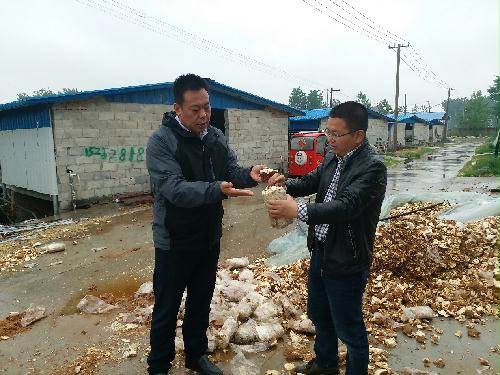 在连云港瑞洋牧业有限公司考察调研时,杨章平教授与企业负责人于勇和技术人员,就灌南县菌糠产量、饲料化利用、菌糠饲料安全性等进行了现场交流,提出改进措施。