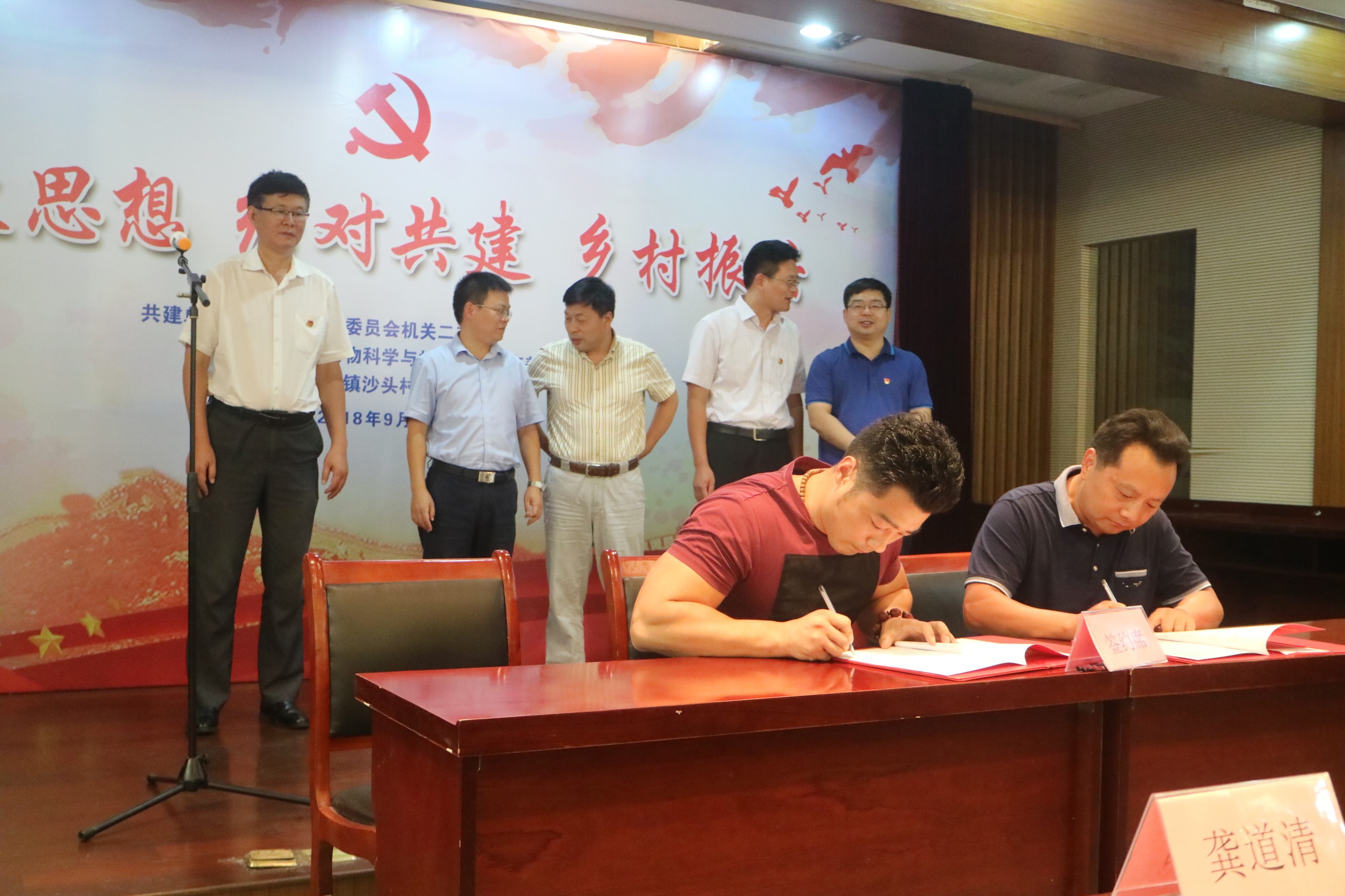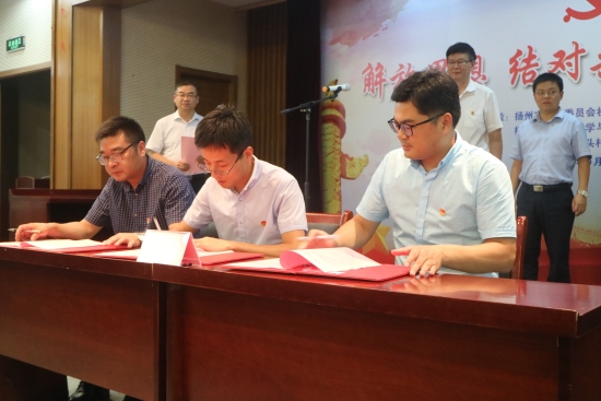 2018年9月7日,我院水产养殖系党支部与扬州市农委机关二支部、广陵区沙头镇沙头村党总支在广陵区西江生态园进行了三方结对共建签约仪式。本次三方结对共建以“解放思想,结对共建,乡村振兴”为主题,是为发挥各自要素和优势,推动现代乡村产业体系建设和一、二、三产业融合发展的一次有益尝试。