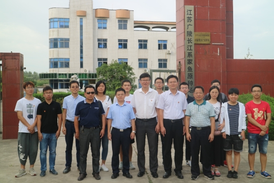 共建仪式后,在广陵区农委副主任唐明虎的带领下,广陵区副区长胡宏、我院党委副书记王小龙、我院副院长龚道清以及水产养殖系党支部师生党员对西江生态园和长江系四大家鱼原种场进行了考察,并合影留念。