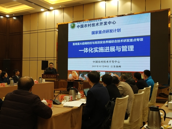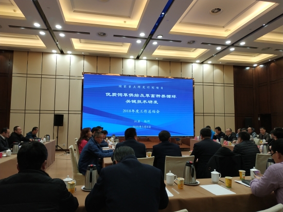 3月8日,国家重点研发计划“优质饲草供给及草畜种养循环关键技术研发”项目2018年度工作总结会在扬州召开,科技部中国农村技术开发中心孙康泰副处长、项目专员王天成博士、郭宝健博士、扬州大学副校长陈国宏、科技处处长刘巧泉、动物科学与技术学院院长杨章平出席会议。会议由国家重点研发计划项目主持人、中国农业大学杨富裕教授主持,首先请陈国宏校长致辞。陈校长代表扬州大学欢迎来自全国20多家科研院所、高校及知名企业的项目咨询专家、课题负责人及课题主要骨干,并向大家介绍了扬州城历史、扬州大学概况、动科院及草学学科的发展脉络,希望全国各兄弟单位的专家借助此次会议的契机,大力支持扬州大学草学学科的建设和发展。随后,科技部孙康泰副处长就国家重点研发计划“畜禽重大疫病防控与高效安全养殖综合技术研发重点专项”的一体化实施进展与管理做了详细的介绍,孙处长在报告中梳理了专项目前取得的重大成果以及在实施和管理过程中遇到的问题,对下一步工作做了明确的规划和指导。最后杨富裕教授对项目的总体情况做了汇报,各子课题负责人汇报了课题工作进展及成果,来自四川省草原工作总站、甘肃农业大学、湖北大学、中国农业科学院草原研究所、中粮营养健康研究院的项目咨询专家对各课题的工作进行了点评,并因地制宜提出了进一步完善相关工作的建议,各课题负责人与项目骨干根据建议,以小组讨论形式拟定了下一步工作计划。