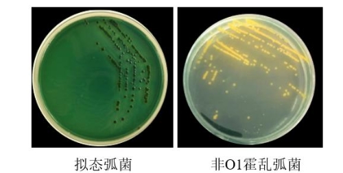 通过实验室中平板划线,发病青虾携带大量单一细菌,将分离到的病原菌,经细菌纯化、革兰氏染色、生化鉴定以及16S rDNA分子鉴定,确认病原为非O1霍乱弧菌和拟态弧菌。非O1霍乱弧菌广泛分布在水环境中,是鱼类和无脊椎动物的重要病原菌,可感染罗氏沼虾、青虾、鲤鱼、泥鳅等水产动物,给水产养殖业造成了严重的经济损失。拟态弧菌与霍乱弧菌亲缘关系很近,最初认为是非典型生化特性的霍乱弧菌,其形态学、DNA序列及性质与霍乱弧菌极相似,但生化反应不典型,霍乱弧菌能分解多种糖,产酸不产气,拟态弧菌与霍乱弧菌最重要的区别是不发酵蔗糖。本实验室将分离的霍乱弧菌和拟态弧菌分别接种于TCBS培养基,发现霍乱弧菌菌落呈黄色,拟态弧菌菌落呈绿色。霍乱弧菌与拟态弧菌对青虾的半数致死浓度基本相同,表明其对青虾的致病力相同,感染拟态弧菌的青虾,其症状与霍乱弧菌感染相似,主要表现为躯体和附肢发红,本团队将深入研究拟态弧菌对青虾的致病机制及防控方法,以便对减少青虾红体病的发生提供理论基础。