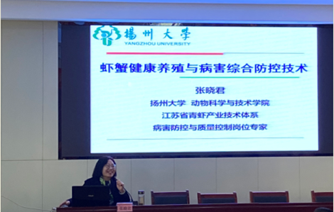 为分享虾蟹健康和病害防控的经验、进一步普及科学养虾知识和实用技术,促进农民增产增收,2020年12月10日,江苏省青虾产业技术体系病害防控与质量控制岗位专家张晓君教授,参加了由江苏省科协农技中心组织的“江苏省院士专家科普乡村行”活动。