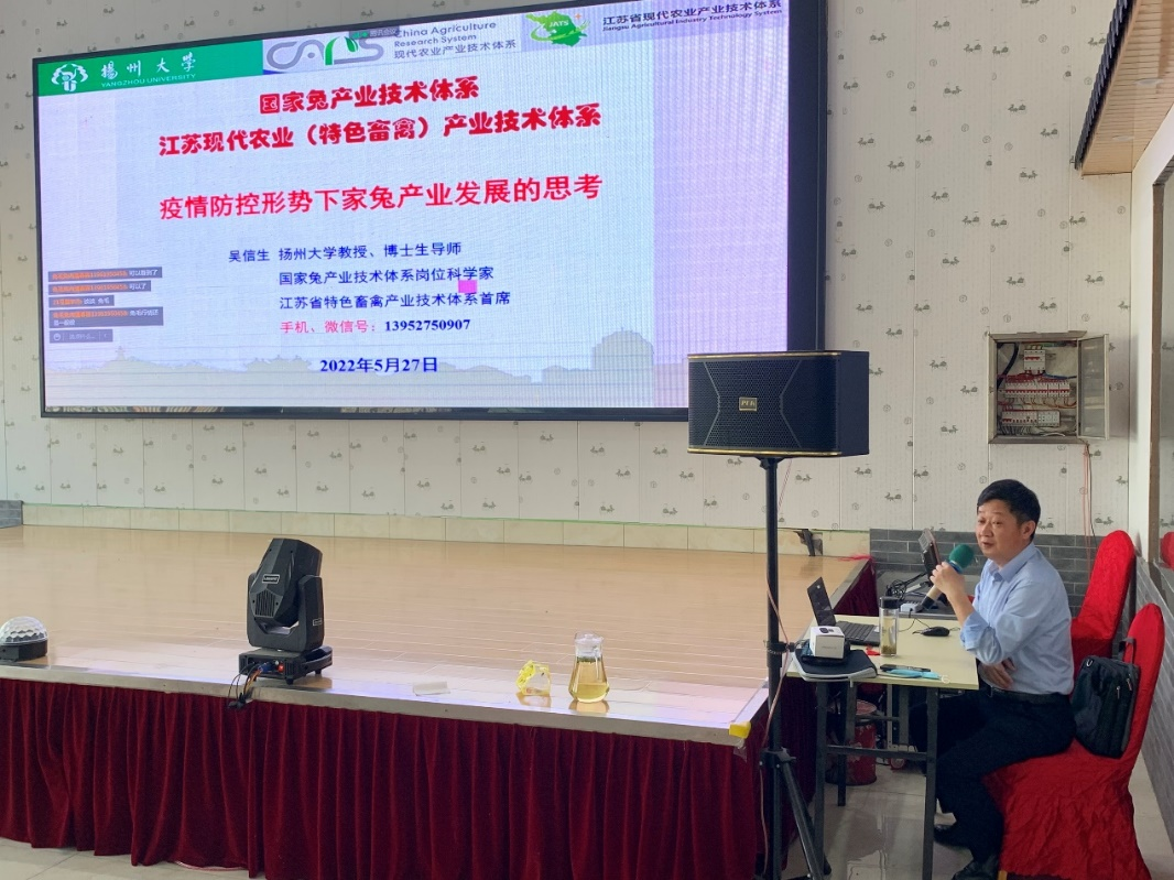 5月27日,国家兔产业技术体系岗位科学家、江苏现代农业(特色畜禽)产业技术体系首席吴信生教授团队,协同江苏省农业科学院王芳研究员、秦枫副研究员前往盐城市大丰区开展家兔养殖方面的技术培训、产业调研及技术指导。