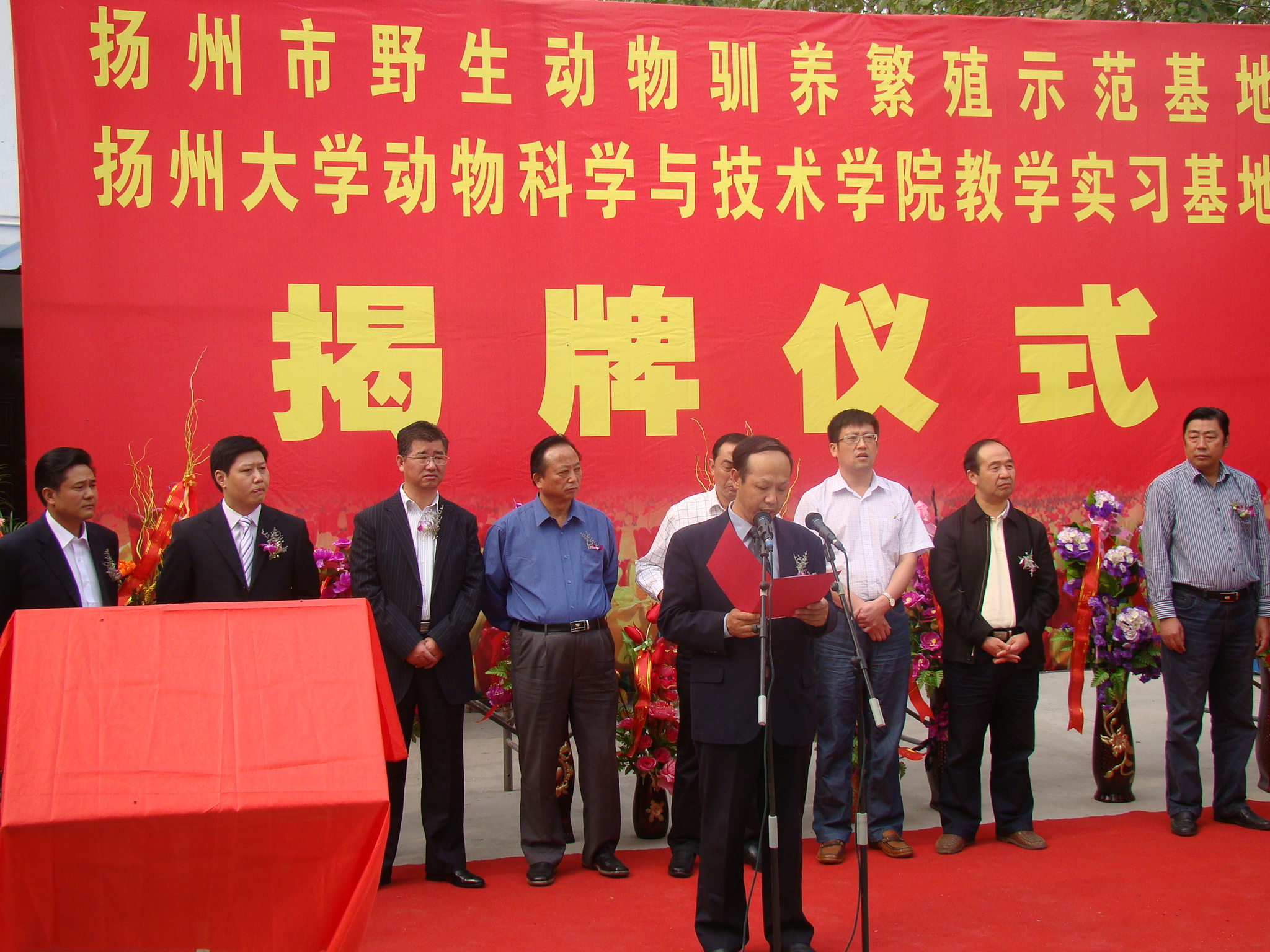 10月16日上午,我院在扬州市高特经济动物有限公司举行教学实习基地揭牌仪式,院党委书记刘金存、副院长王洪荣以及扬州市、高邮市等相关部门领导出席仪式,刘金存书记与市县有关领导共同为教学实习基地揭牌,副院长王洪荣代表学院与高特公司董事长葛永辉签订合作协议书。