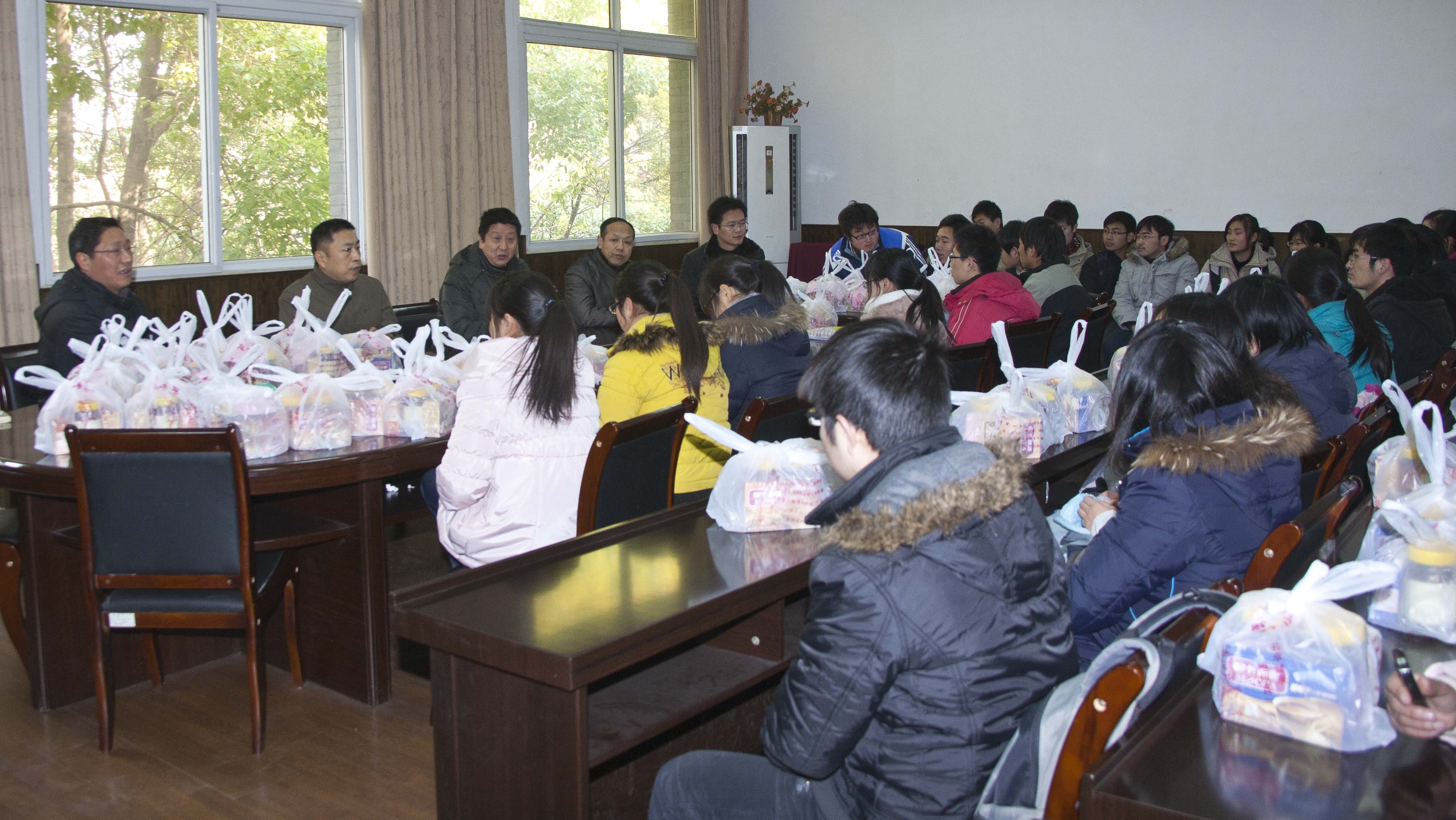 考研誓师大会由院党委余吉生副书记主持召开。会上院长陈国宏教授首先代表学院向考研学子们表示亲切的慰问,他要求考研同学们要做好考试相关的准备工作,准确掌握考试时间,调节身体和心理状况,以良好的心态面对考试。党委常务副书记王志跃教授鼓励大家要坚持到底就是胜利,祝愿大家取得优异的成绩。会后学院全体领导给每一个考研学生发放了蜂蜜、咖啡等慰问品,考研学子们纷纷表示一定不辜负学院领导们的关心和关怀,一定不辜负老师们的期望,认真复习,考出好的成绩。