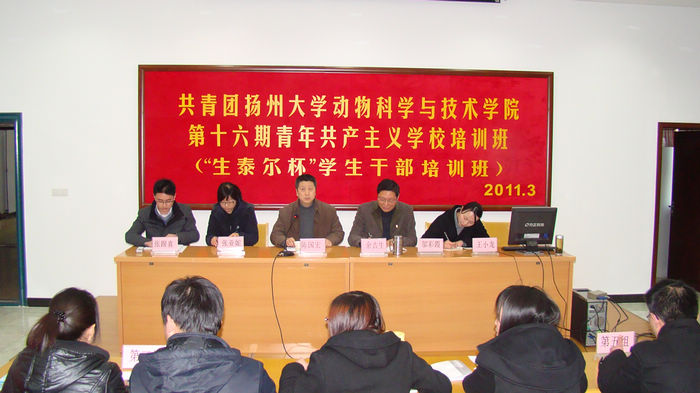 3月16日下午四点,我院于牧医楼多媒体教室举行了共青团扬州大学动科学院第十六届青年共产主义学校培训班开班仪式,此次培训的对象是学院学生会、社联、研究生会部长以上同学以及各班班长、团支书等主要学生干部。院陈国宏院长、余吉生副书记到会并作重要讲话。