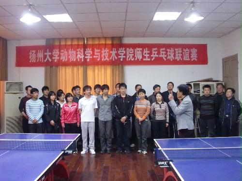 为了丰富我院师生的校园文化生活,促进师生之间更深入地沟通与交流,为构建和谐校园文化氛围、创建平等和谐的师生关系搭建良好的互动平台,扬州大学动物科学与技术学院工会、团委共同举办了首届师生联谊乒乓球比赛。经过两个星期紧锣密鼓的筹备,比赛于4月12日下午正式拉开了帷幕。教职工老师,博、硕士研究生,本科生以饱满的热情积极参与,教职工两个代表队,研究生、本科生各一个代表队四支队伍参加了比赛,比赛以团体循环赛形式进行,比赛项目包括男子单打、女子单打、男女混双。