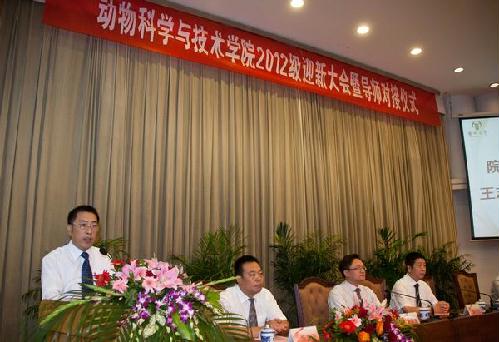 会上,副校长陈国宏教授、院党委常务副书记王志跃教授、畜牧学、草学一级博士点学科带头人王金玉教授、赵国琦教授等全院48名教师和全体2012级本科生参加了导师对接仪式。远在美国马里兰大学访问的李碧春教授、高波、王霄燕老师,也现场和自己结对的新生进行了视频连线。结对成功后,导师和所结对学生共同启动水晶球,一起见证这美好时刻。会议在豪迈的校歌声中圆满结束。(院学工办供稿)