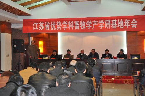 2013年1月15—16日,江苏省优势学科畜牧学产学研基地2012年度产学研合作交流会在江苏现代畜牧科技园(泰州)隆重举行,来自全省多位省、市领导、重点产学研基地和我院领导、专家教授共80余人出席了这次会议,会议在隆重热烈的气氛中进行。