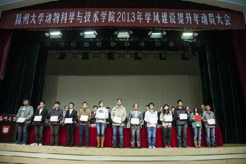会上,本科生代表向全院学生发出了“实施‘510行动’,执行‘五个一计划’”倡议,教师代表、研究生代表作了表态发言。与会领导还为2012年度学风建设年活动中涌现出的先进集体和个人颁发了荣誉证书。