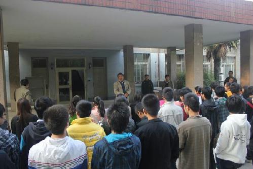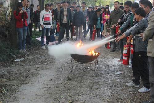 活动包含理论和实践两个环节,安全及消防知识由校保卫处崔永福老师讲解,崔老师首先强调“安全重在预防”,讲解了几种预防方法的注意事项,其次结合实例演示多种场合下逃生的方法,强调生命的重要性;最后崔老师讲解了灭火器的种类与使用方法,并作了示范。整个讲解风趣生动。最后每个学员在均模拟火场演练灭火器的使用,在老师的指导下,每个学员均学会了正确使用灭火器并完成各自的任务。