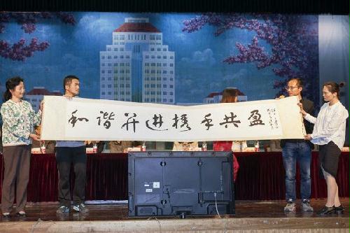 我院宿舍文化建设年活动筹备之际,原苏北农学院畜牧兽医系第一代教育管理工作者,87岁高龄的徐士生老先生应邀欣然题词“和谐并进、携手共盈”,表达了老一辈畜牧人对后辈学子的深情勉励和殷切希望。在启动仪式上,泰州和盈畜牧有限公司技术中心主任陈健校友、家长代表施银燕老师、学生公寓84号楼宿管员吴凡娜阿姨、学生公寓第二党支部书记朱锦裕同学登台,携手展示主题卷轴,并共同宣布宿舍文化建设年活动开幕。