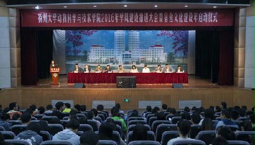 赵文明书记在总结讲话中,系统总结了学院近5年来推进学风建设取得的成绩,客观分析了制约人才培养质量进一步提升所面临的问题,重点指出了学风上的“松”和“懒”及教风上的“软”和“散”等现象。赵文明通过讲述“动科故事”,寄语同学们在学风建设中演好“三种角色”——心怀梦想,志存高远,当好“追梦人”;脚踏实地,砥砺笃行,做好“实干家”;挑战自我,革故鼎新,勇为“探险者”。赵文明希望全体老师严守“厚德抱朴,弘道树人”教风,把严教学管理关、抓好教学能力关、强化师德示范关等“三个关口”,努力做好“十三五”开局之年各项工作,为实现学院事业更好更快发展不懈奋斗。最后,与会人员集体起立高唱《扬州大学校歌》,会议圆满落幕。