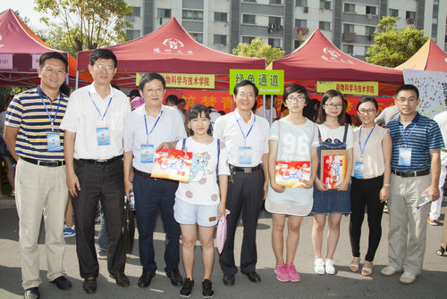 上午,校党委书记姚冠新,校长焦新安,校党委副书记、纪委书记刘延庆来到我院迎新现场,亲切看望前来报到的新生和家长,了解学院迎新工作安排和新生报到情况,并与新生亲切合影。院党委书记吴圣龙为新生颁发梦想基金,勉励他们自强不息、励志有为。迎新期间,75岁高龄的退休老教师张牧教授冒着酷热来到学院迎新点,亲切慰问忙碌中的老师和同学们,令在场师生深受感动。