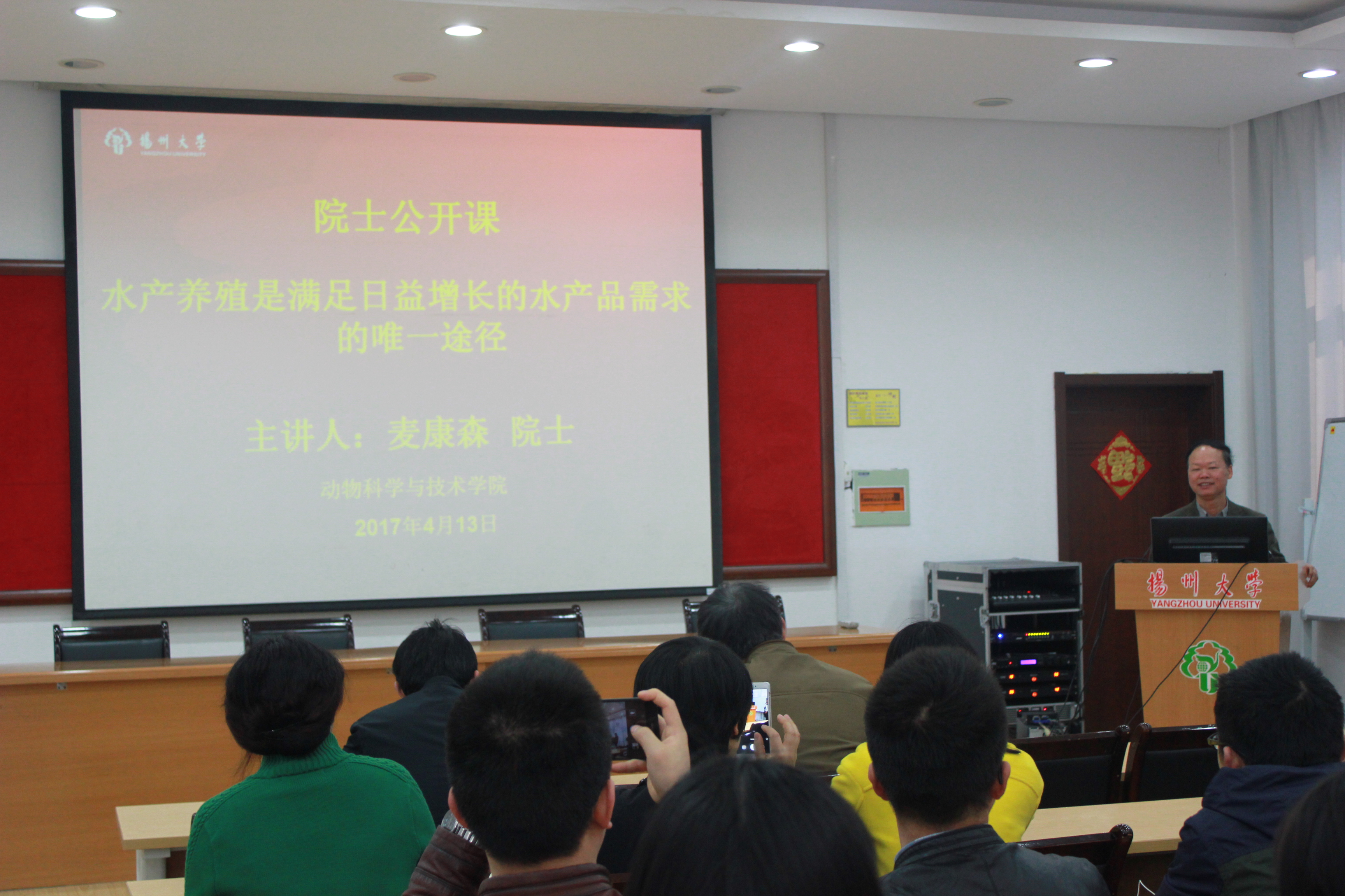 4月13日,中国工程院院士麦康森教授应邀来到我校,为我院师生作题为“水产养殖是满足日益增长的水产品需求的唯一途径”的报告。副校长陈国宏教授出席报告会。