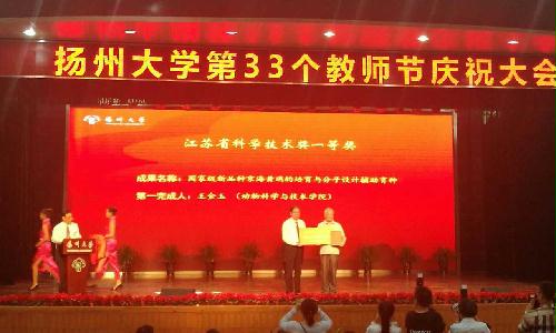 过去的一年里,学院党政团结和带领全院师生员工,围绕“十三五”规划确定的奋斗目标,聚精会神抓机遇,齐心协力谋发展,学院在人才培养,科学研究、师资队伍建设等方面都取得了长足进步甚至突破性进展,并涌现出了一批先进集体和个人。会上,姚冠新、焦新安等校领导为江苏省科学技术奖一等奖获得者王金玉教授;教育部高等学校科学研究优秀成果奖自然科学类一等奖获得者李碧春教授;江苏省第五期333高层次人才培养工程第三层次中青年学术技术带头人常国斌、包文斌教授;江苏省“六大人才高峰”第十三批高层次人才培养人选徐琪副教授;2016-2017年省高校在线开放课程立项项目动物遗传学课程负责人李碧春教授;2017年江苏省优秀研究生工作站负责人毛永江教授;2017学年度最受学生欢迎的专业课任课教师王宵燕、张亚妮副教授;校第三届微课教学比赛一等奖获得者张亚妮副教授颁发荣誉证书,并向他们表示热烈祝贺和节日问候。包文斌教授作教师代表在大会上交流发言。