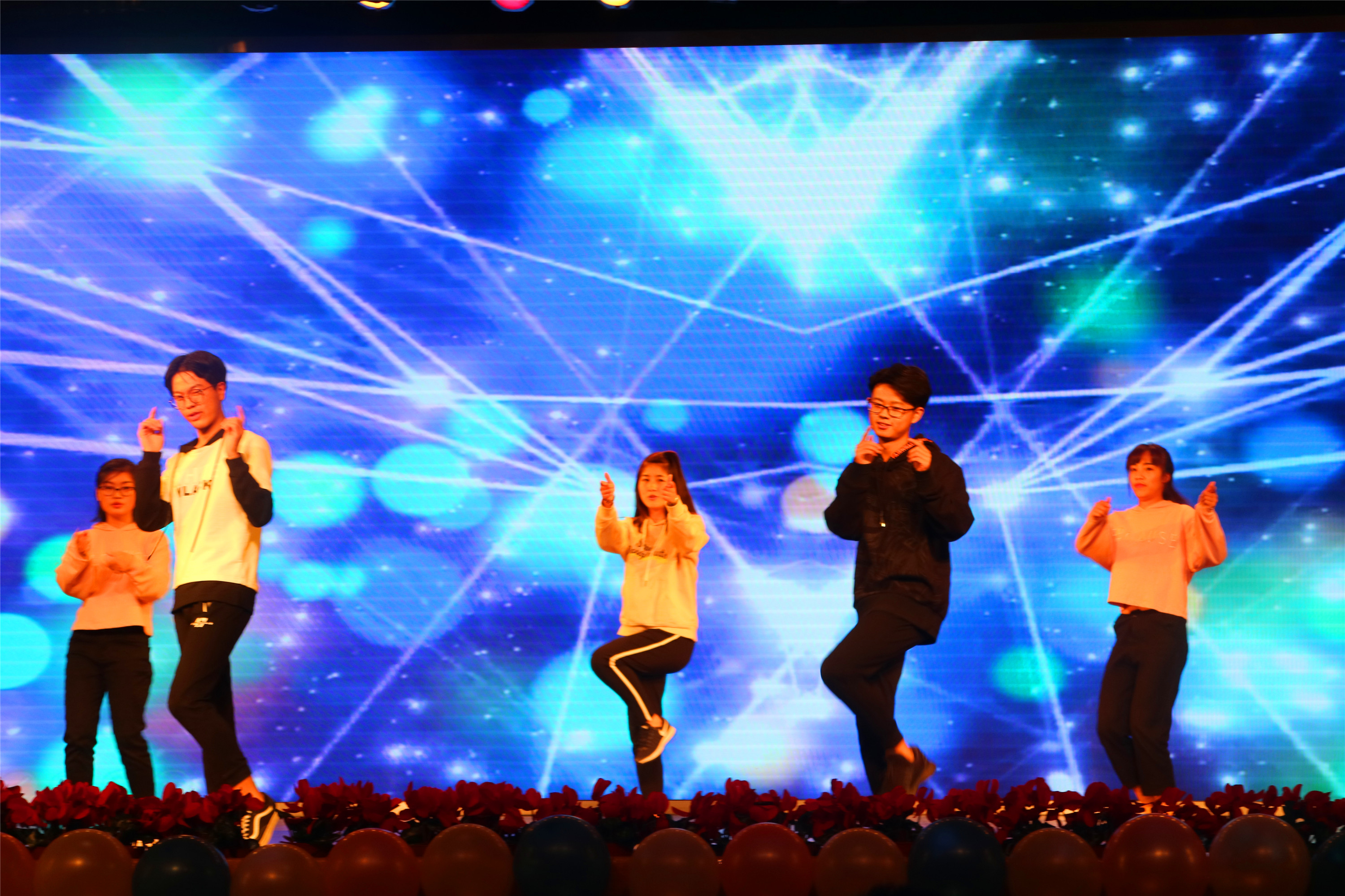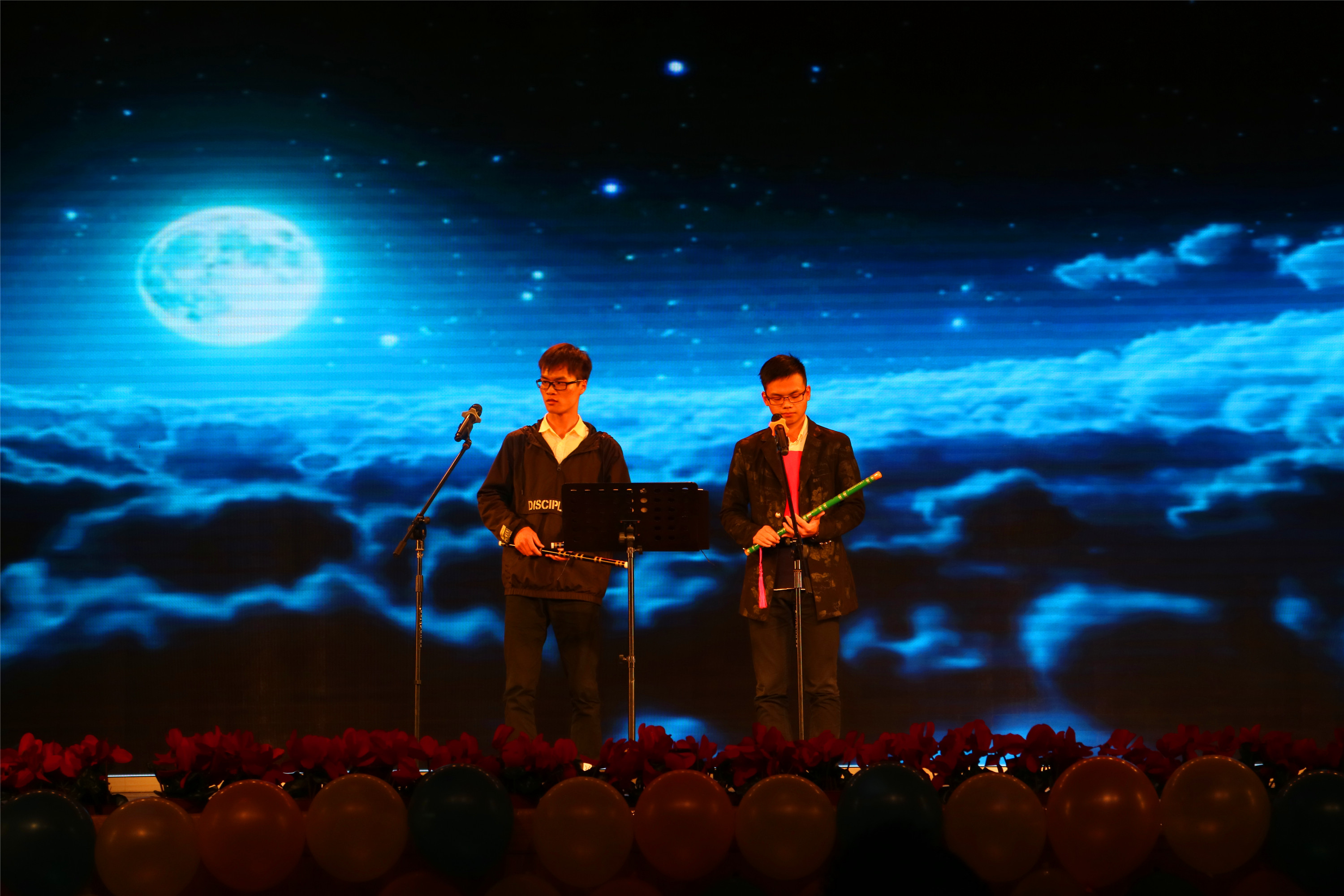 青春拂晓,梦起动科。7点的时钟缓缓敲响,首先是木头马尾乐队给我们带来了一场林籁泉韵的开场秀,一首《私奔到月球》点燃了全场气氛;水产1701班的劲舞《Fanstsic Baby》和动科1702班的古典舞《半壶沙》,一刚一柔,一欢一舒,令人回味无穷;水产1701班的钱茗琪等人携小朋友一起为我们带来了一首手语舞——《萤火虫》,优雅舒缓,整齐划一的动作配上软糯的童音,让观众深深体会到个中温情;草叶1701班的马熙博和黄胜涵两位同学带来的萨克斯弦乐《回家》,曲调跌宕起伏,扣人心弦,勾起了对家的思念;穿插在各节目间的互动环节,更是将观众的热情层层调动,全场反响热烈。在这场才艺盛宴中,最值得一提的就是《新闻联播》节目。草业1701的马悦琪和沈亦池同学大胆创新,以幽默新奇的角度 “播新闻”,让人忍俊不禁。