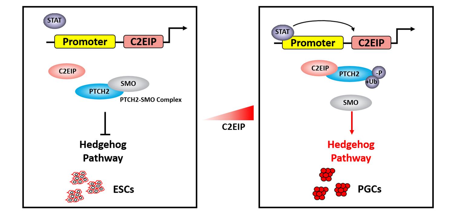 4月28日,国际著名出版集团Springer Nature子刊《Cell Death and Disease》杂志在线发表了我院李碧春教授研究团队在原始生殖细胞发生调控的最新研究成果,题目为“Interaction of the Primordial Germ Cell-Specific Protein C2EIP with PTCH2 Directs Differentiation of Embryonic Stem Cells via HH Signaling Activation”,该成果发现了一个调控原始生殖细胞发生的新基因——C2EIP (XM_001 233327.1,Chr2,Expression In PGC,C2EIP),并提出了一个原始生殖细胞形成的全新调控模式:在原始生殖细胞的形成过程中C2EIP与PTCH2结合后促进PTCH2磷酸化水平的降低和泛素化水平的升高,从而降低细胞内PTCH2蛋白水平,激活HH信号通路,调控原始生殖细胞的形成。其结果为完善原始生殖细胞调控网络提供了理论基础。我校为论文的唯一通讯作者单位,我院青年教师左其生为论文第一作者,李碧春教授为论文通讯作者。本研究得到国家自然科学基金项目、江苏省优势学科畜牧学等资助。