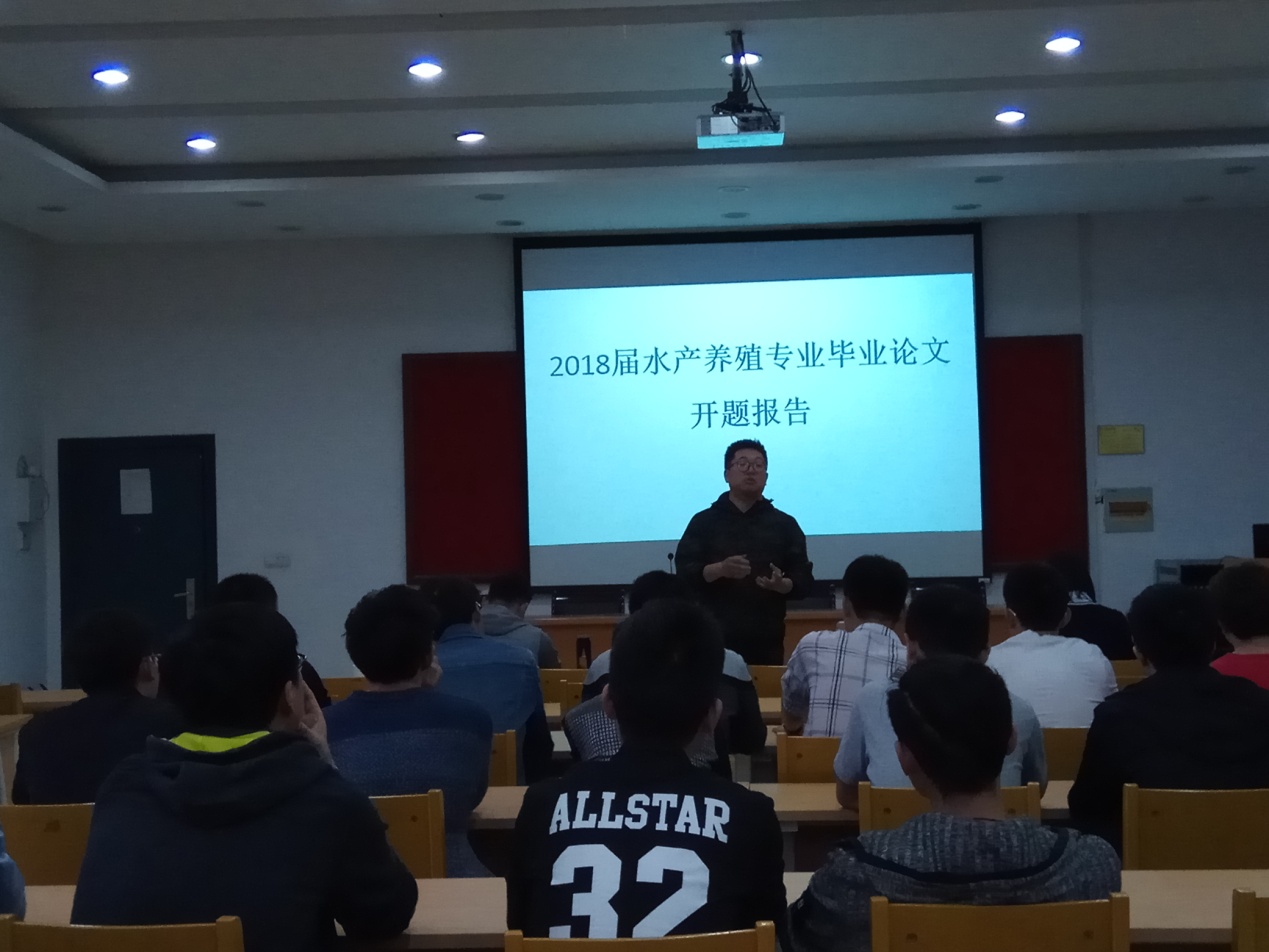 5月10日下午,我院水产养殖专业14级本科毕业论文开题报告会在立华科技报告厅举行,水产养殖专业相关教师和水产1401班全体学生参加。