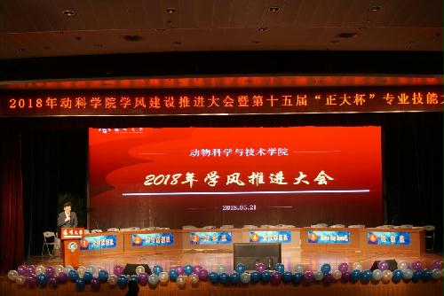 5月21日晚,2018年学风建设推进大会暨第15届“正大杯”专业技能大比拼在大学生活动中心三楼小剧场隆重举行。校学生处处长林刚、校团委书记施林峰、校党委组织部副部长陈立永、校研究生工作部副部长高明国、校教务处副处长俞福丽、校关工委办公室主任刘方云、南通正大肉鸡一条龙事业行政总监王善荣、南通正大肉鸡一条龙事业人力资源经理杨晓军、南通正大有限公司人力资源部经理朱益应邀出席。院党委副书记王小龙主持大会。