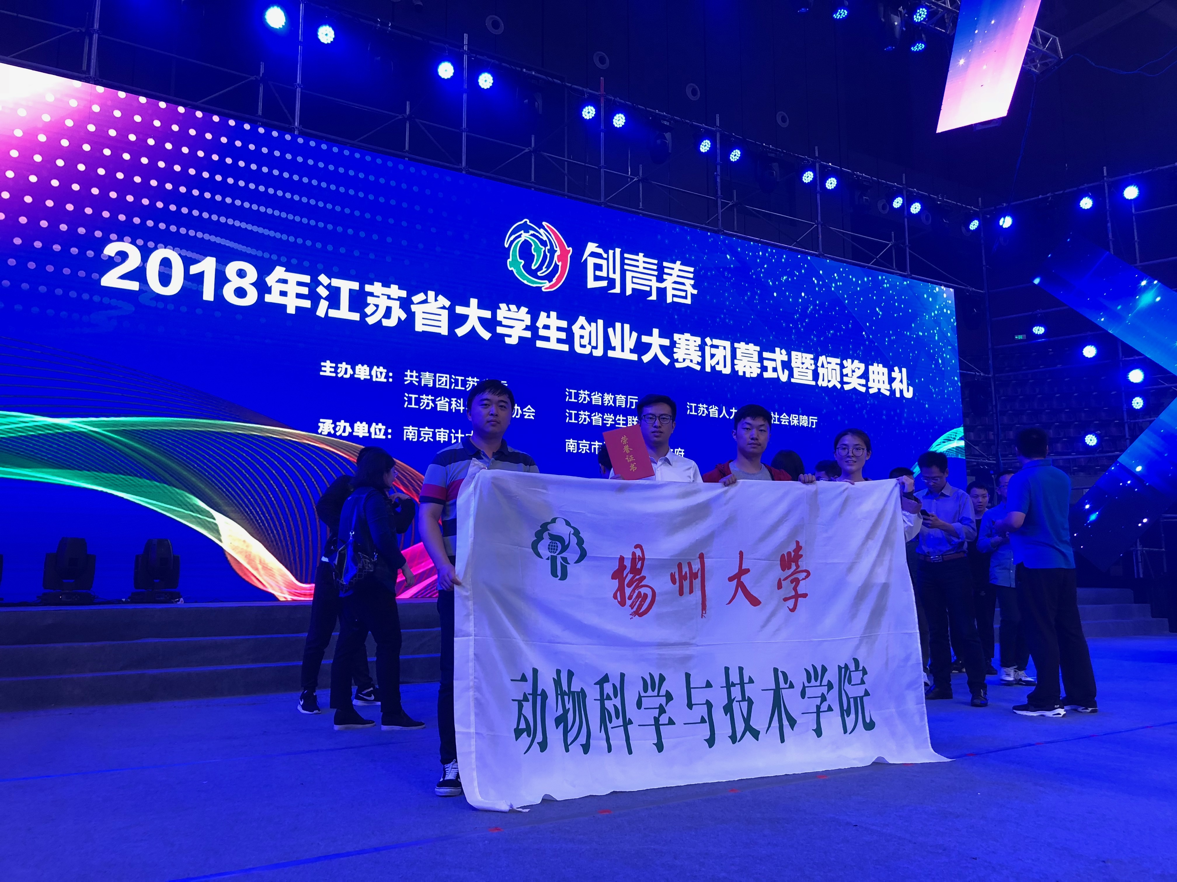5月25-27日,2018年“创青春”江苏省大学生创业大赛终审决赛在南京审计大学进行,省内共计87所高校入围江苏省决赛,近三百个项目,千余名师生齐聚南审,论道创业!我院张志鹏团队项目“多元化、智能化、定制化、信息化”互联网+大学生农牧项目创客空间荣获金奖,并推报参加国赛。
