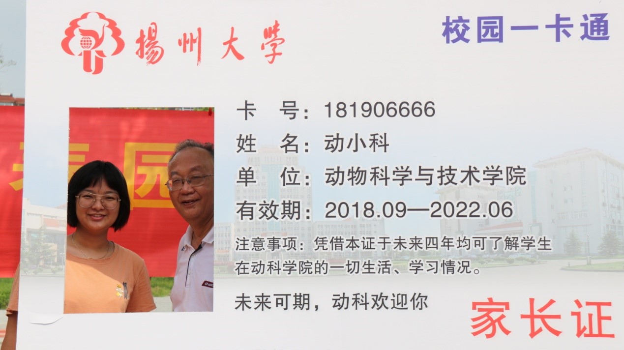 我院此次迎新场地设立在文汇路校区。在文汇路校区留学生草坪前,我们为新生准备了创意拍照墙板,当然,陪同新生一起来的家长也有专属的拍照点。设立梦想号为学生拍照点,设立校园一卡通“家长证”为家长拍照点,记录新生家长与孩子在扬大留下的第一张影像,气氛热烈,吸引了新生与家长的目光。