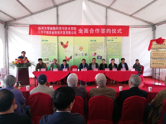 活动中,吴圣龙强调双方要加强沟通交流,接好对子,精准打牢基础,有效建立“互惠双赢”长期稳定的产学研合作关系,共同发展。杨章平与江苏宁创农业科技开发有限公司张萍董事长签订产学研全面合作协议并授牌。动物繁殖与生产系系主任王杏龙教授为企业员工做了健康养殖专题讲座。