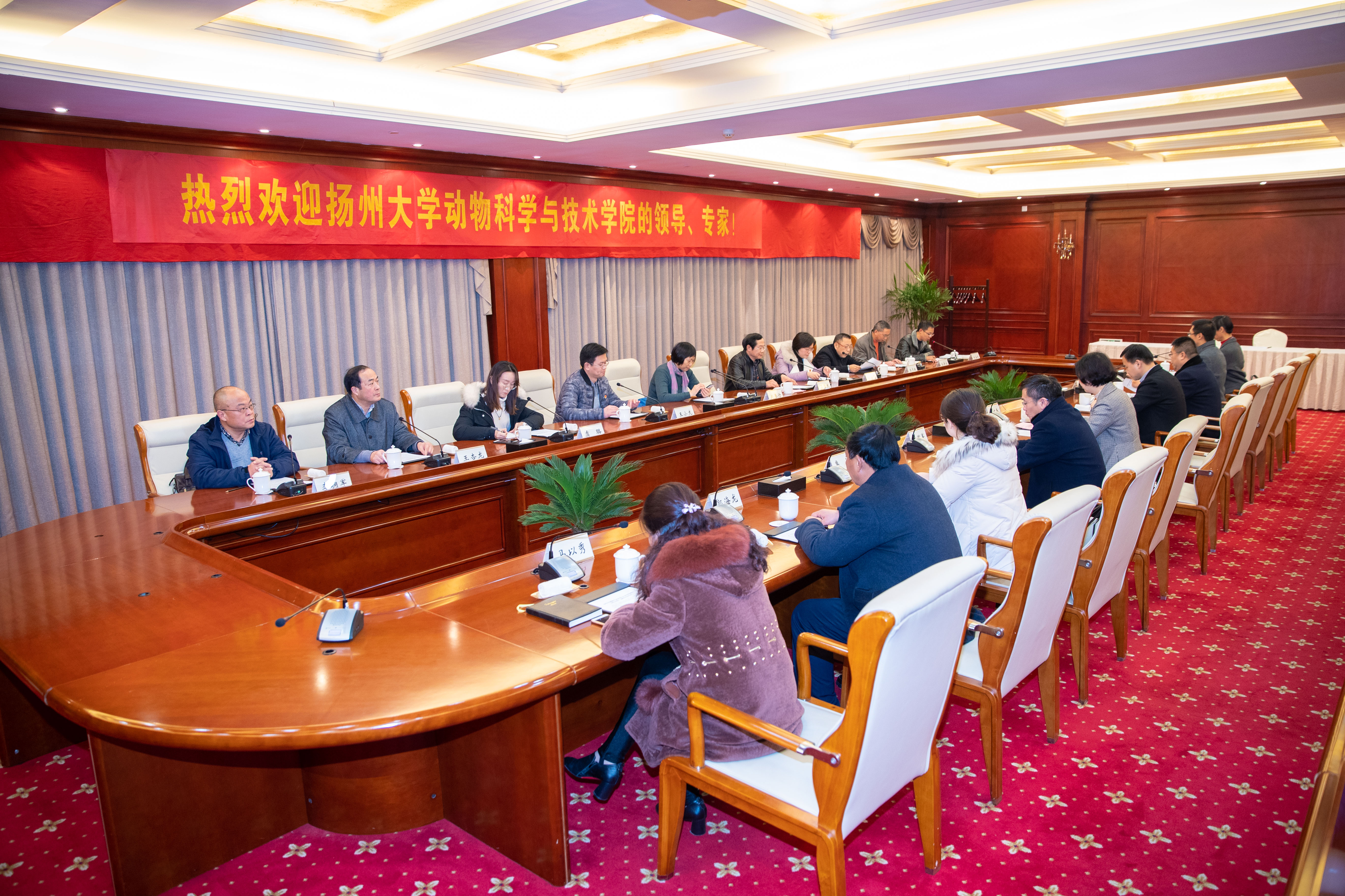 活动开始,申建春女士致欢迎辞。她表示一个地方的发展与科技人才密不可分,欢迎并感谢扬州大学师生来建湖县传经送宝、进行科技帮扶。另外,她从建湖县的人口地理、经济产业、人文教育等方面一一作介绍——建湖县是全国百强县,有着巨大的经济发展潜力,文化浓厚、尊师重教、人才辈出,与扬州大学有着良好的合作基础与发展空间。紧接着,由扬州大学的领导、动科学院领导、教师代表共同与地方领导和军曼公司负责人完成了院企对接服务签约和揭牌仪式。