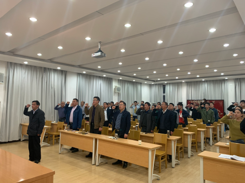 党课正式开始前,学院党委书记夏泽清带领全场党员集体宣誓,重温入党誓词。