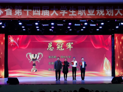 11月27日至28日,江苏省“武进人才杯”第十四届大学生职业规划大赛总决赛在常州举行。经过全省初评、复赛和总决赛,学院张志鹏同学荣获研究生组总冠军,学院党委副书记王小龙获优秀指导教师,学校荣获“最佳组织奖”。