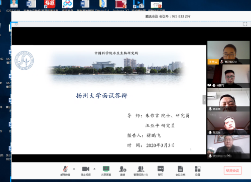 会上,对来自武汉中科院水生所褚鹏飞博士进行了视频面试。应聘人员介绍基本信息、学习经历和学术科研等情况,学术委员会成员在研究领域、团队组建、工作计划等多方面与应聘人员进行互动交流。面试环节结束后,进行了充分讨论和评议,双方都比较认可。