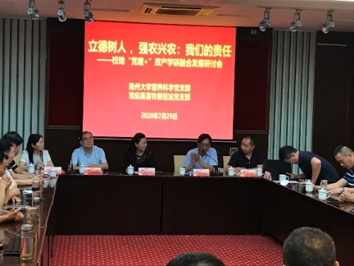 7月29日,学院和共建支部宝应县畜牧兽医站党支部在扬州大学虹桥专家楼举办校地“党建+”政产学研融合发展研讨会。