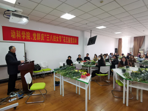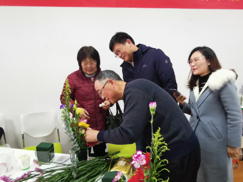 璀璨芬芳,给生活增添光彩。为丰富女职工的精神文化生活,增进教职工之间的交流,增强大家的归属感、幸福感,学院工会联手党群工会于3月8日上午在大学生活动中心一楼举办了“尽绽芳华 因你而美”插花艺术教职工花艺鉴赏“职工大讲堂”活动,党群总支书记、学工部(处)副部(处)长居学明,学院党委书记夏泽清、副书记王小龙应邀出席活动,党群工会主席毕亮、副主席孙鹏程,学院工会主席刘大林参加活动,学院工会副主席张钰主持活动。