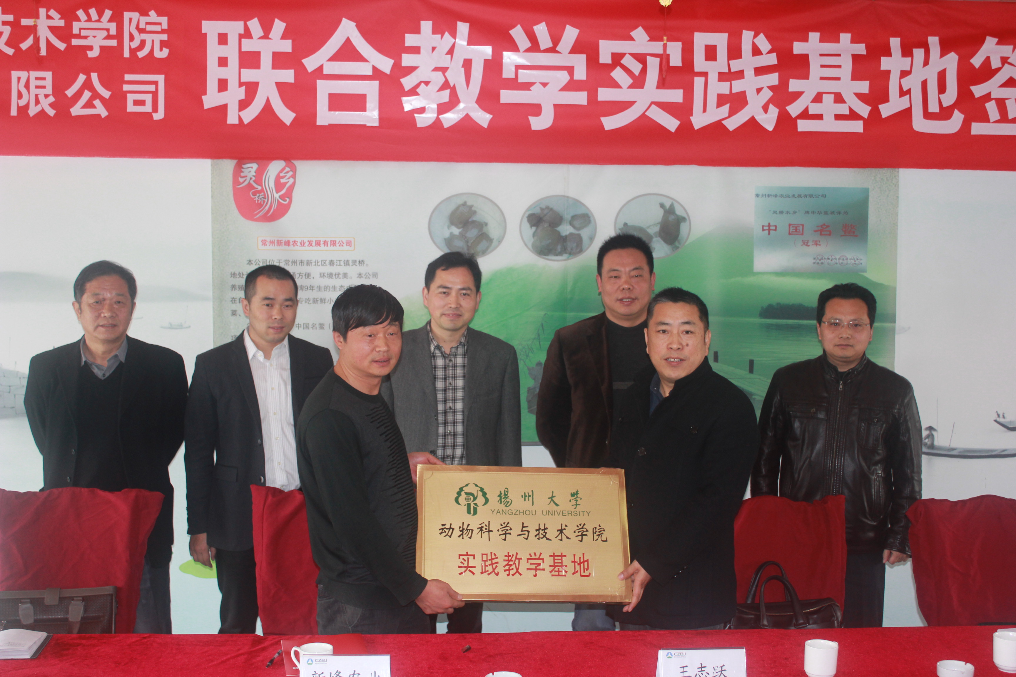 3月28日,扬州大学动物科学与技术学院-常州新丰农业发展有限公司联合教学实践基地签约暨挂牌仪式在常州新丰农业发展有限公司举行,我院王志跃院长、杨章平副院长,常州市农委渔业处李文群处长等出席活动。新丰农业发展有限公司总经理丁小兴介绍了公司的经营发展情况,希望以教学实践基地为新平台,推进人才培养,深化校企科技合作;李文群处长介绍了常州市渔业发展规模、特点及发展思路,希望通过校企联姻架起合作桥梁,推进科技对接,提升常州地区水产养殖业的整体水平。王志跃院长为新丰农业发展有限公司授牌并介绍了我院的建设发展特别是学科专业的建设情况,希望进一步加大校企产学研合作,推进社会服务,提升学生实践能力,实现校企双赢。