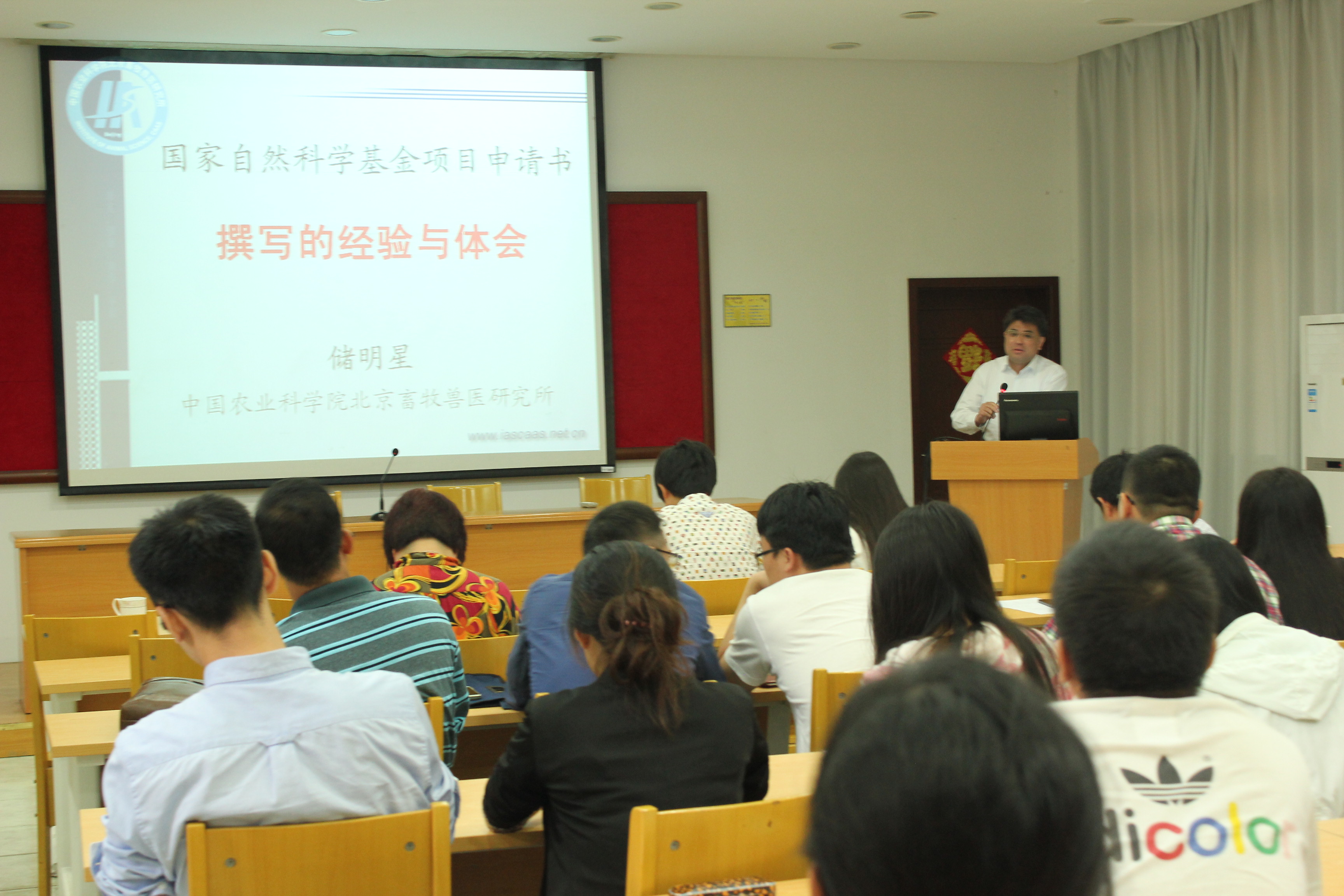 9月23日,中国农业科学院北京畜牧兽医研究所储明星研究员带领他的课题组来我院作学术报告,并介绍了自己在国家自然科学基金项目申请书撰写方面的经验与体会,全院专任教师参加了报告会。