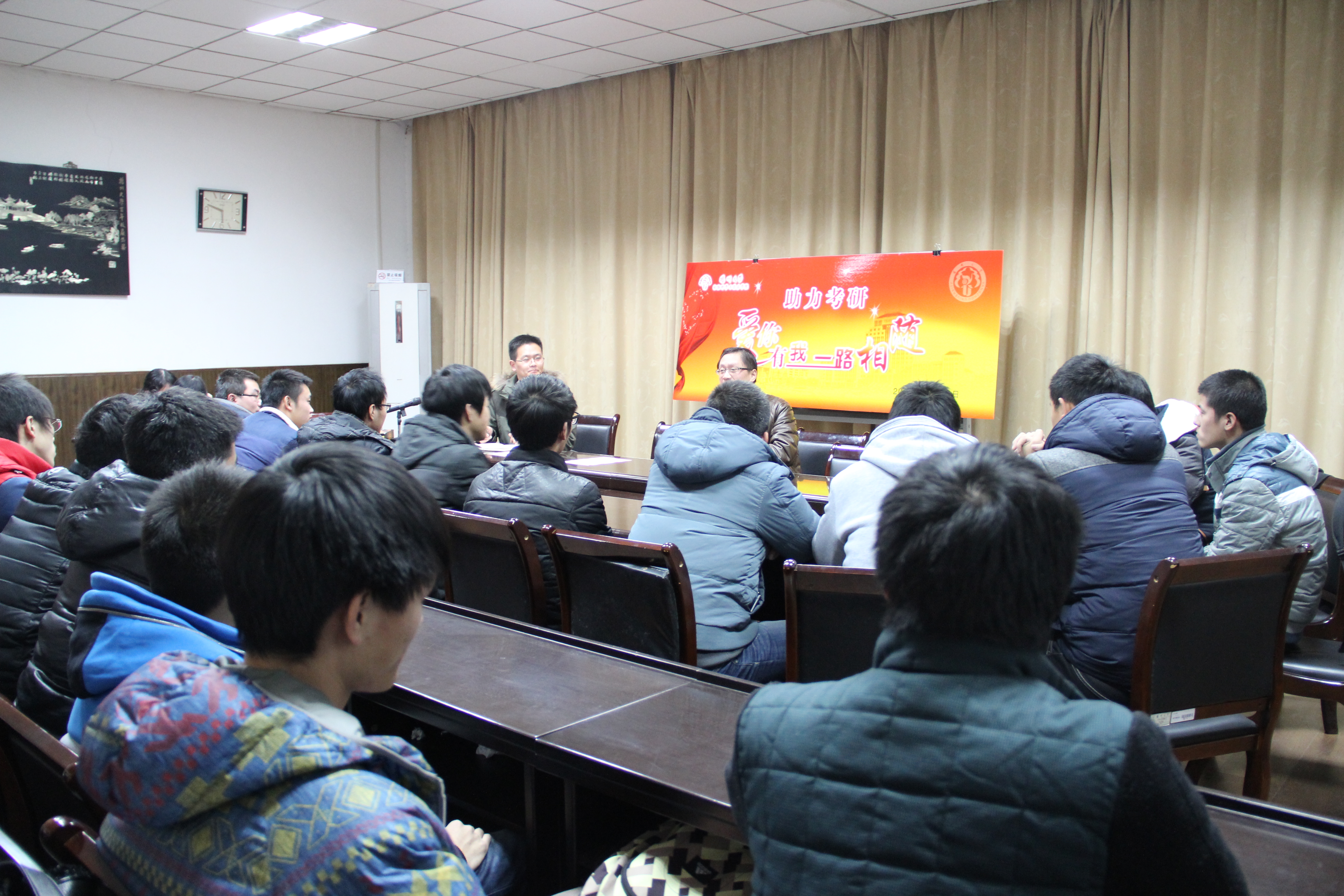 12月16日下午,为了鼓舞即将考研的大四同学,我院在院会议室召开“助力考研:爱你有我,一路相随”2015届考研慰问会,院党委副书记陈克勤出席慰问会。