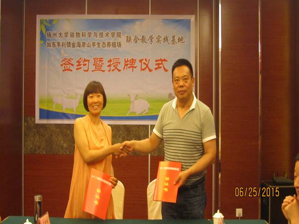 6月25-26日,我院杨章平副院长、吴信生副院长、李拥军教授一行三人奔赴如东市和海门市,分别在如东金海岸山羊生态养殖场和海门市种羊场举行实践教学基地挂牌仪式和签约,海门市种羊场同时成为我院建设的江苏省研究生工作站单位。如东县农委、海门市农委相关领导出席上述活动。签约挂牌仪式结束后,院、企双方就基地建设、人才培养、科研合作等方面的问题,进行了进一步的沟通和交流。