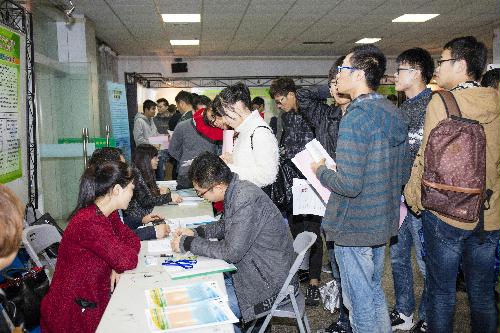 11月7日,我院在荷花池校区大学生活动中心举办2015年度畜牧人才专场招聘会。此次招聘会吸引了全国各地43家畜牧企业来扬,江苏立华牧业有限公司、正大集团江苏区、大北农饲料有限公司、江苏富裕达粮食制品股份有限公司、大连三仪动物药品有限公司、北京生泰尔生物科技有限公司、广东温氏食品集团股份有限公司江苏分公司、上海新邦生物科技有限公司等知名畜牧企业也纷纷向毕业生抛出橄榄枝。招聘会共有约1100余个就业岗位可供学子们选择,现场近100余名同学与相关用人单位达成就业意向。